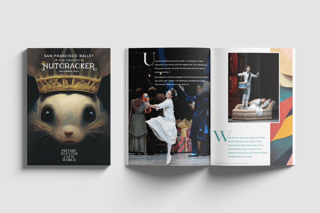 Throughout its history, San Francisco Ballet has embodied the spirit of the city: innovative, forward-thinking, and unafraid to challenge conventions. From presenting America’s first full-length Nutcracker to consistently pushing the boundaries of contemporary choreography, the company has understood that ballet’s power lies in its ability to blend timeless traditions with contemporary relevance. As the publication designer for San Francisco Ballet’s in-theater magazine since 2021, I lead the charge in documenting the groundbreaking new works and classical repertoire of this landmark ballet company.